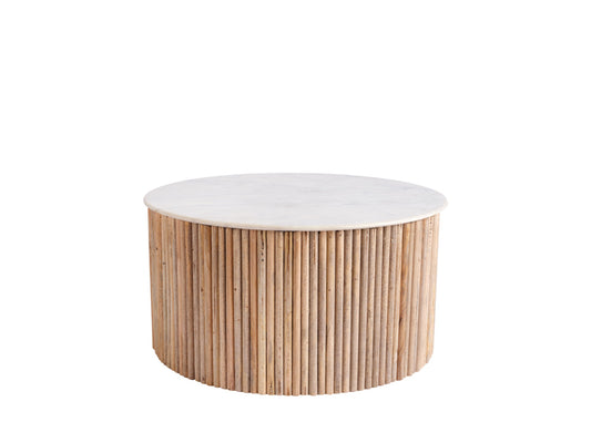 REED Coffee Table – Round Fluted Wood with Marble Effect Top (Pre-Order, 21-Day Lead Time)