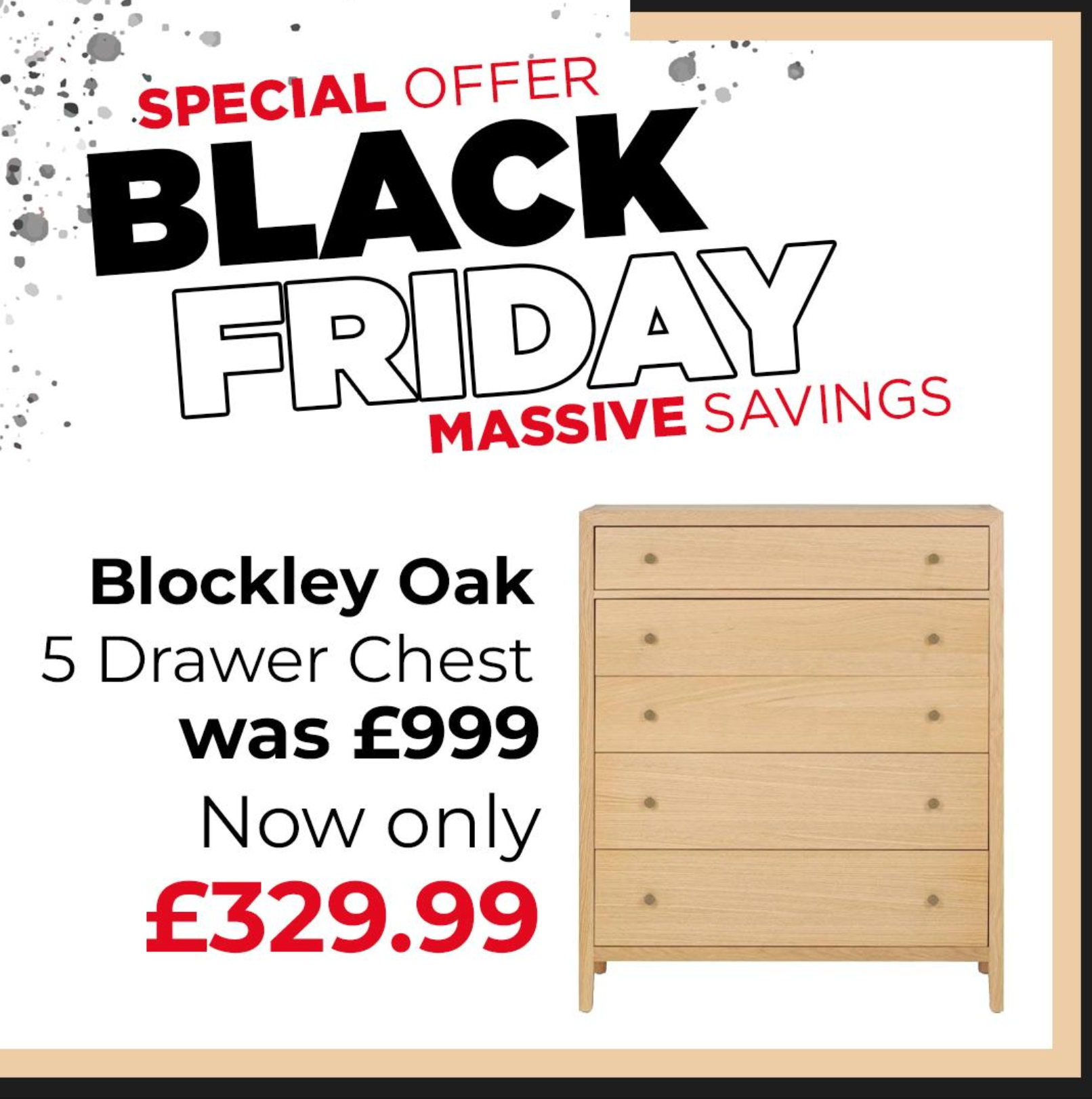 - Five deep drawers with smooth-glide runners