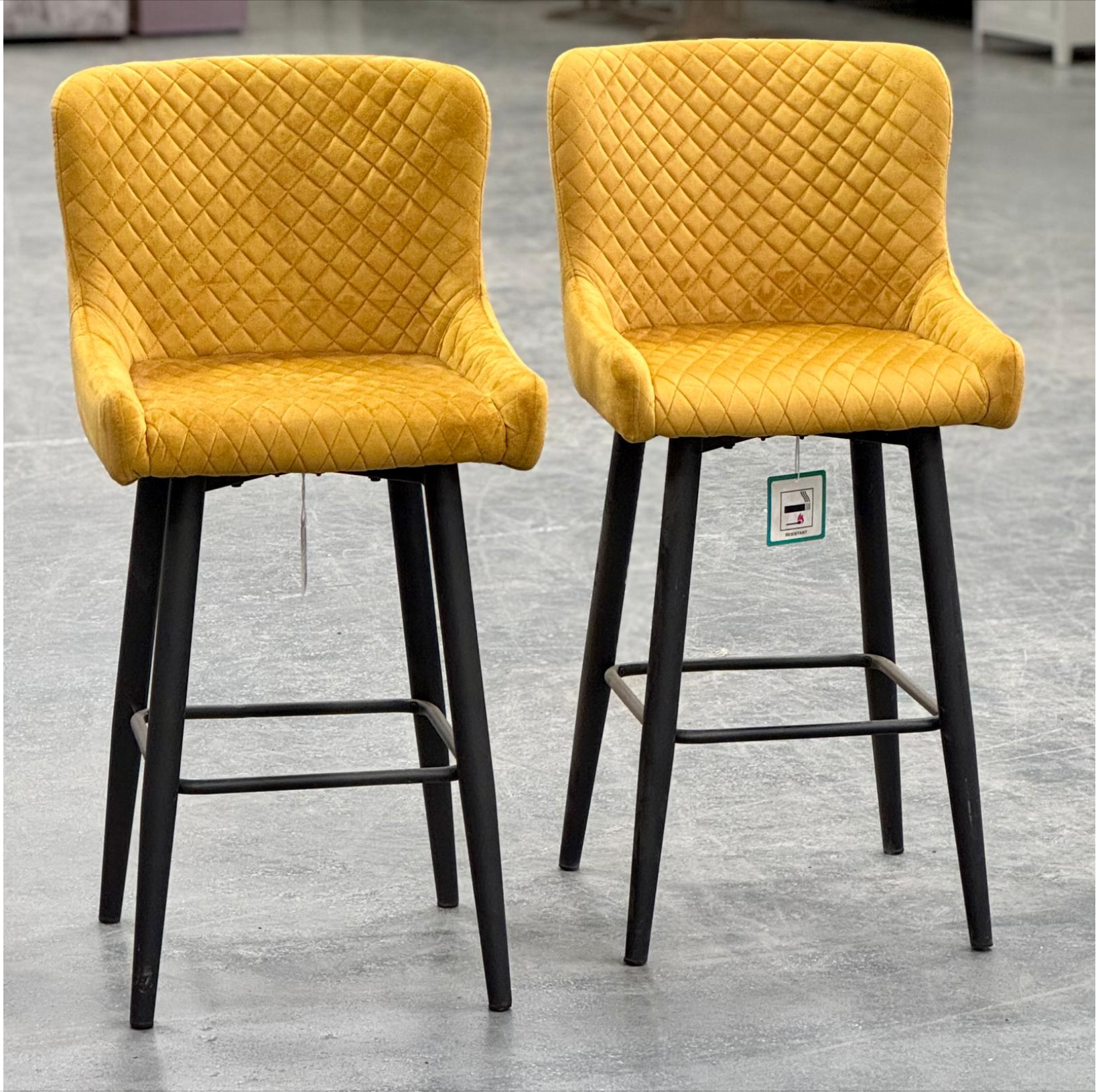 Brighten up your space with a pop of colour. This mustard quilted bar stool pairs perfectly with its slim black legs and comfy curved design.