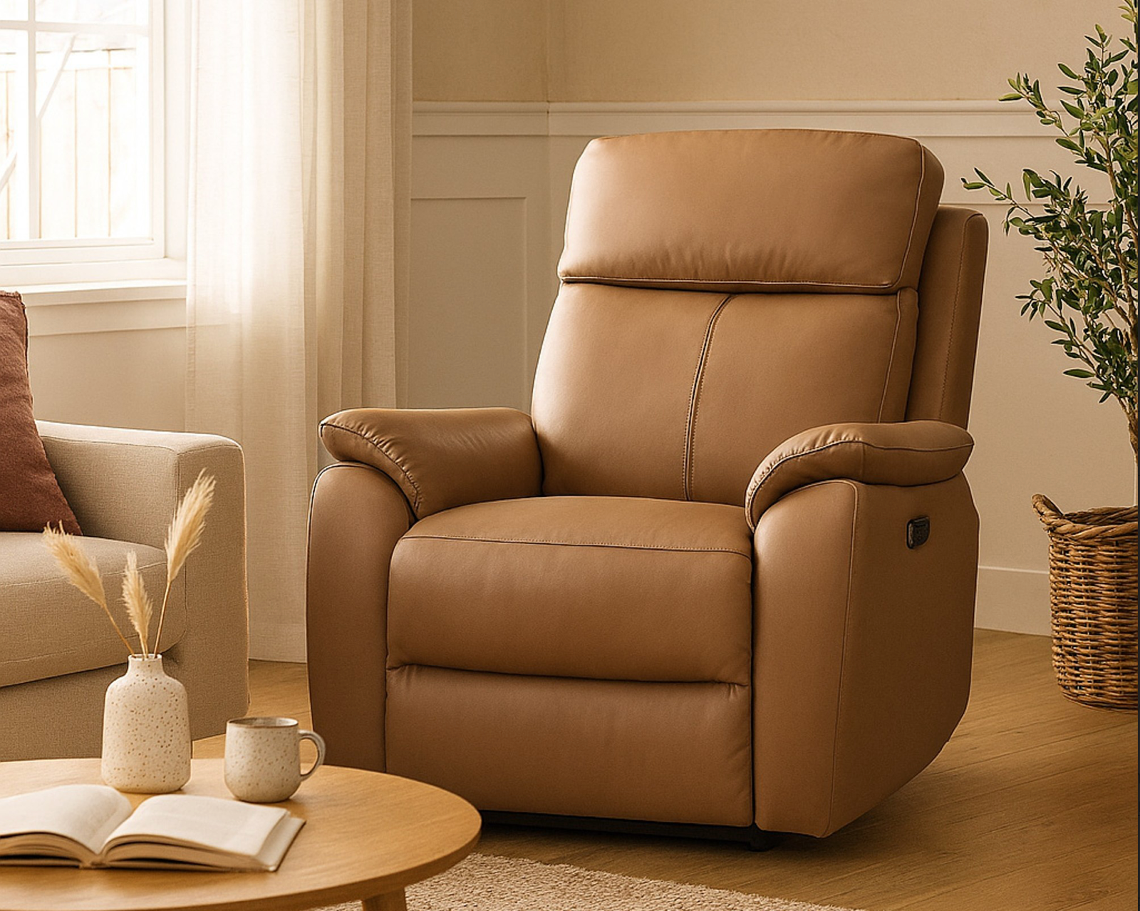 KINGSTON Genuine Leather Recliner Armchair – Tan