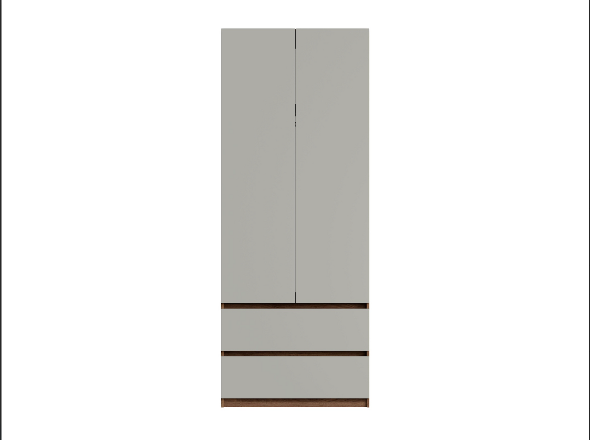 Behind the smooth double doors, you’ll find a spacious hanging rail and upper shelf, ideal for coats, dresses, and folded items. Below, the two deep drawers glide smoothly to store accessories, nightwear, or other everyday items — keeping your room tidy and organised.