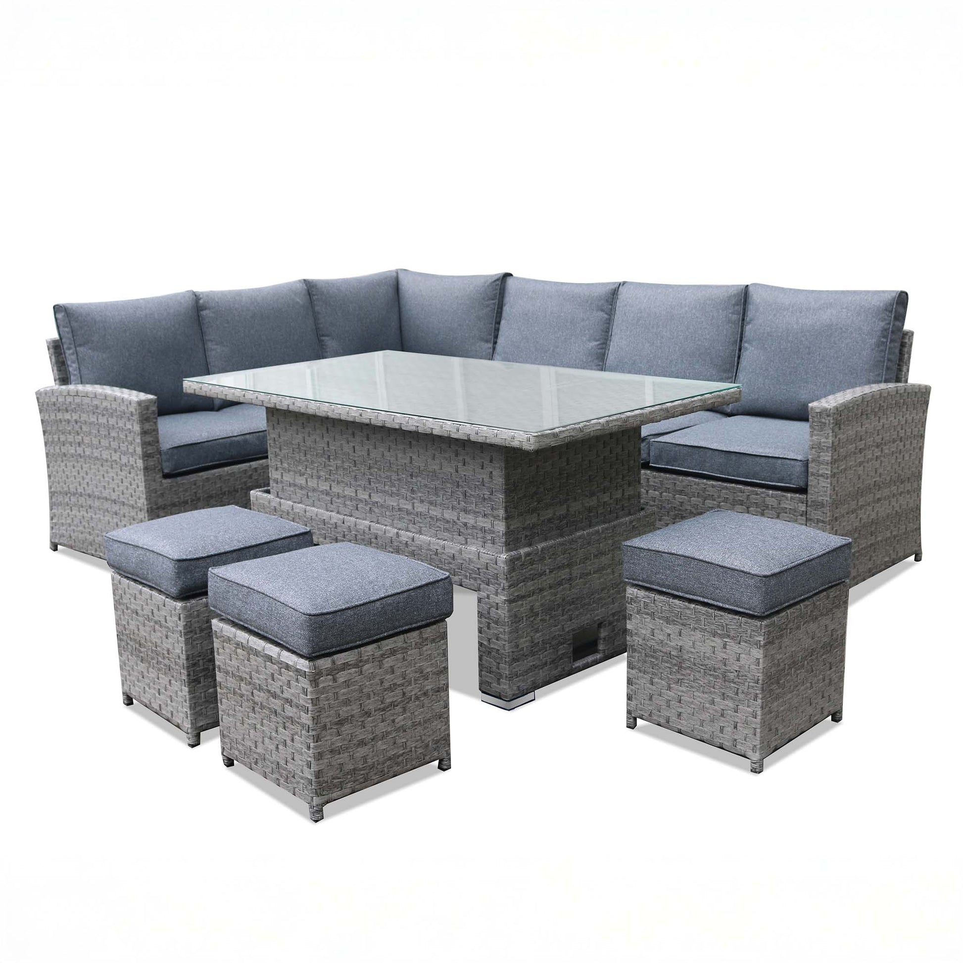MELODY Corner Sofa with Rising Table and 3 Stools in Grey