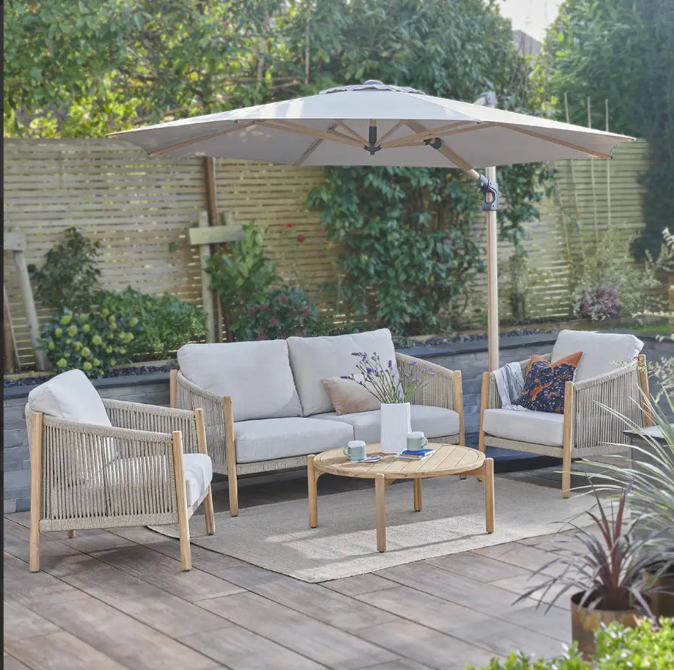Relax in style with the Naples Lounge Set. Crafted from FSC® teak with a modern rope design, this set combines natural beauty with everyday durability. Soft cushions keep things comfortable, while the spacious round coffee table is perfect for drinks and décor. Indoors or out, it’s built for laid-back living — but stock won’t last