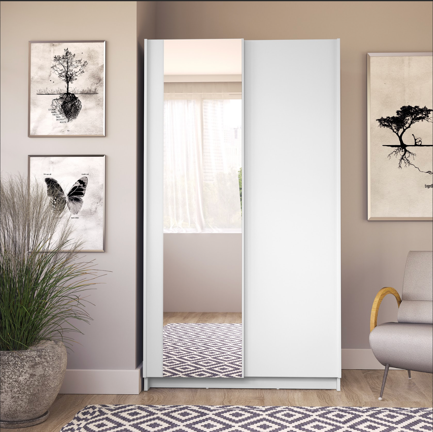SOFIA 100cm | White Sliding Wardrobe with Mirror