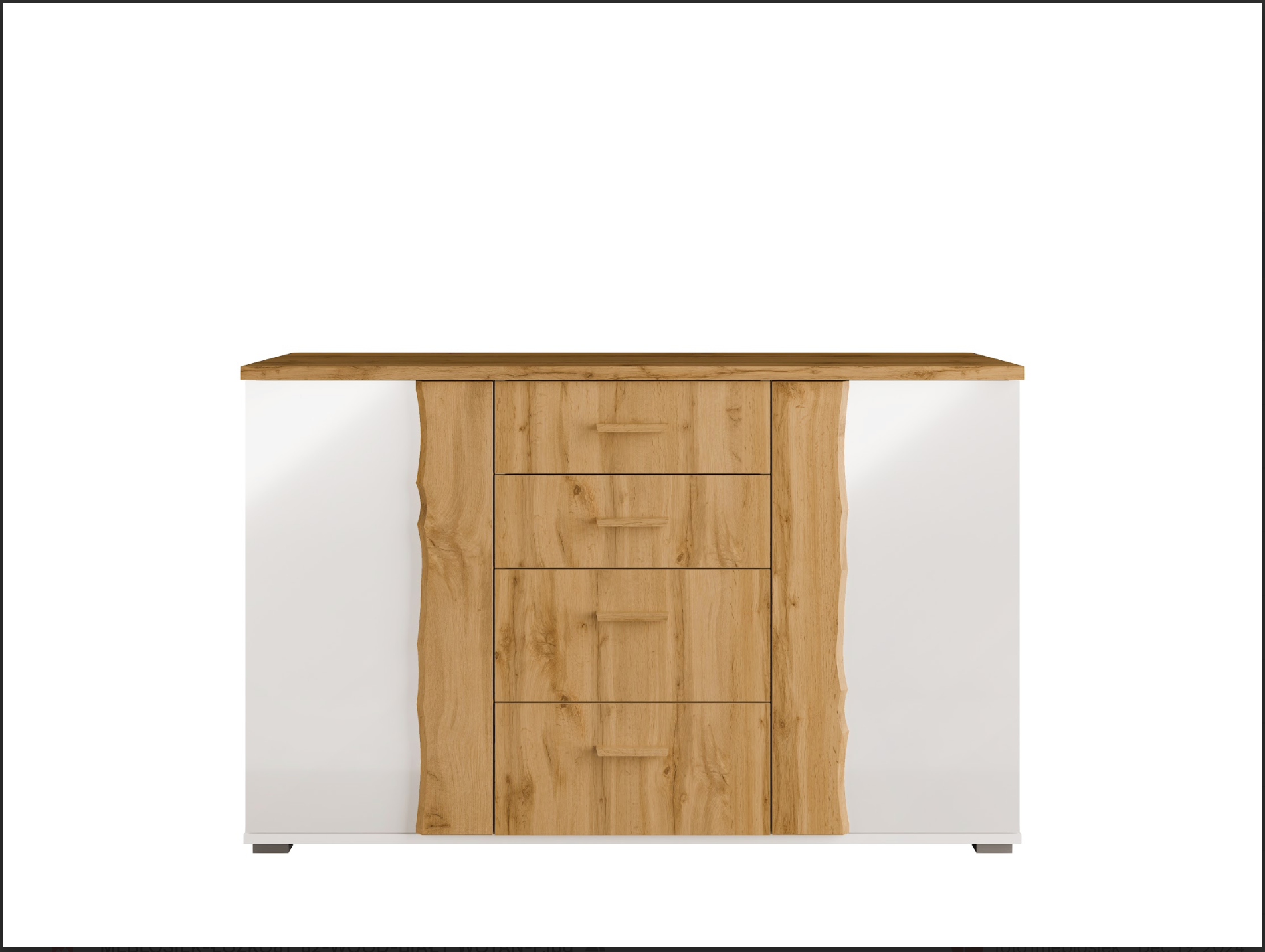 The Wood Chest of Drawers blends alpine white with oak Wotan for a natural, modern look. With 2 cupboards and 4 drawers, it offers generous storage for clothes, accessories, or home essentials. Stylish and practical for any room.